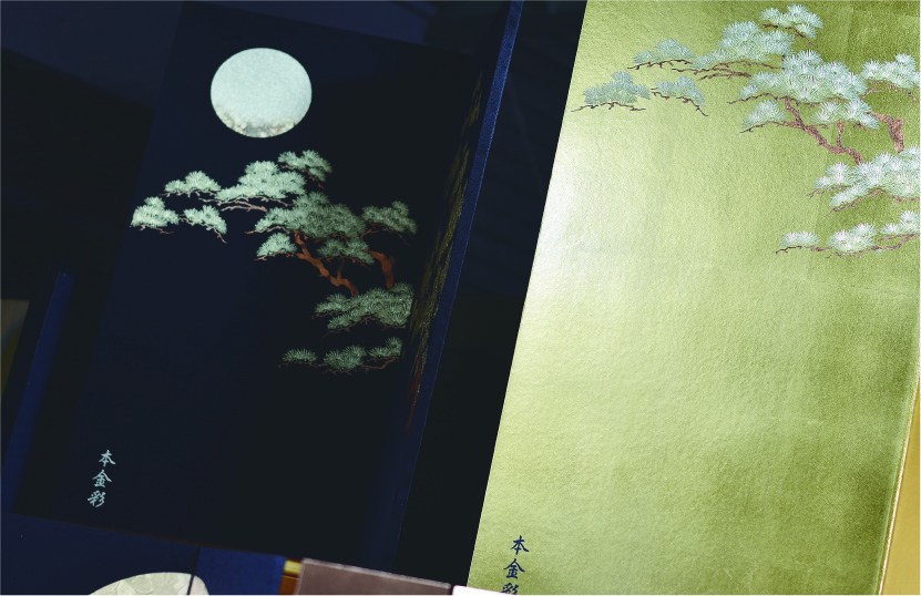 フッーと息を吹きかけると、飛んでいってしまうほど軽くて薄い箔を扱う職人は経験と手先の器用さ、丁寧さが求められます。 節句業界ではこれまで金箔を使用することが多かったのですが、最近では金箔の他にも銀箔や銅箔もよく使用します。 銀に特殊な加工を施した青貝箔や赤貝箔なども渋いです。 現在では飲食店やホテルなどでも時折見かけるようになりましたが、衣・食・住の観点からみても箔の可能性はまだまだ広がっていきます。