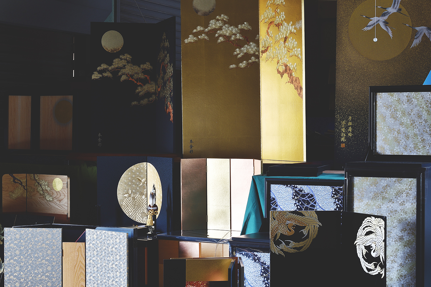 フッーと息を吹きかけると、飛んでいってしまうほど軽くて薄い箔を扱う職人は経験と手先の器用さ、丁寧さが求められます。 節句業界ではこれまで金箔を使用することが多かったのですが、最近では金箔の他にも銀箔や銅箔もよく使用します。 銀に特殊な加工を施した青貝箔や赤貝箔なども渋いです。 現在では飲食店やホテルなどでも時折見かけるようになりましたが、衣・食・住の観点からみても箔の可能性はまだまだ広がっていきます。